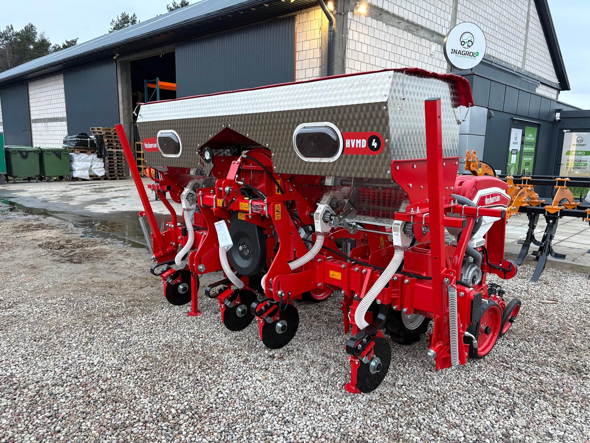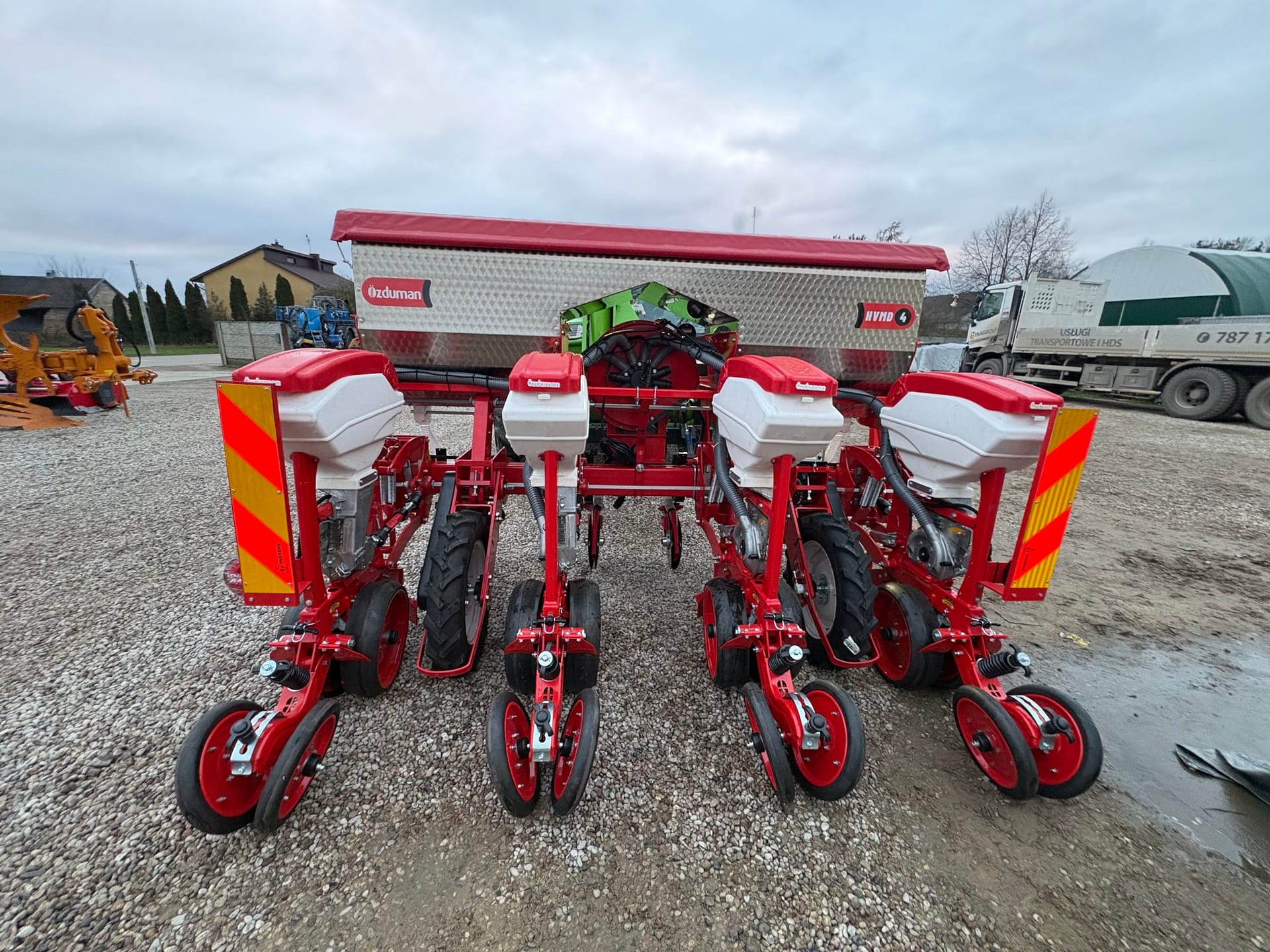 Seria HVMD-T to bardziej zaawansowana linia siewników punktowych, wyposażona w ramę półteleskopową. Jej konstrukcja pozwala na składanie skrajnych sekcji do pozycji transportowej, dzięki czemu szerokość całkowita maszyny wynosi zaledwie 340 cm, co znacznie ułatwia przejazdy drogowe. Siewniki dostępne są w konfiguracjach 6- i 8-rzędowych, co czyni je odpowiednim wyborem dla średnich gospodarstw specjalizujących się w uprawie kukurydzy. Precyzyjne rozmieszczanie nasion w rzędzie zapewnia równomierne wschody i prawidłowy rozwój roślin. Solidna konstrukcja oraz łatwość obsługi sprawiają, że HVMD-T stanowi niezawodne rozwiązanie dla rolników poszukujących wydajnej maszyny do sezonowych prac siewnych.