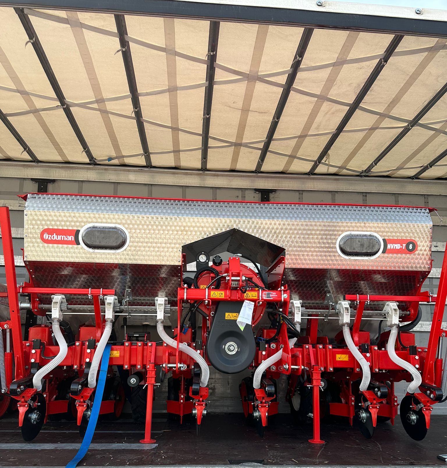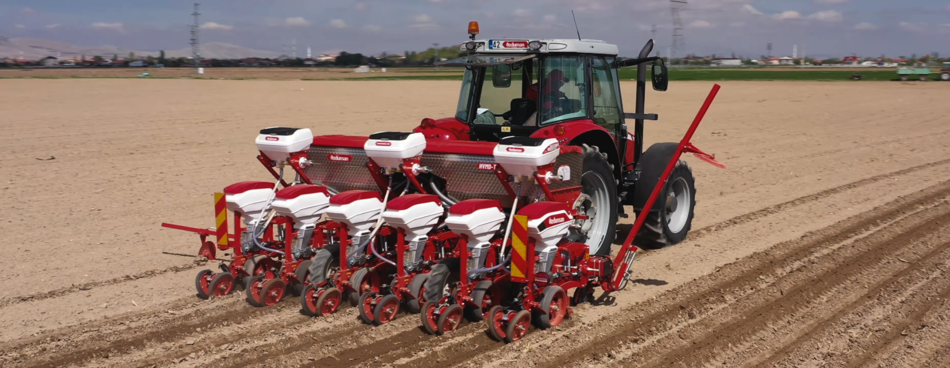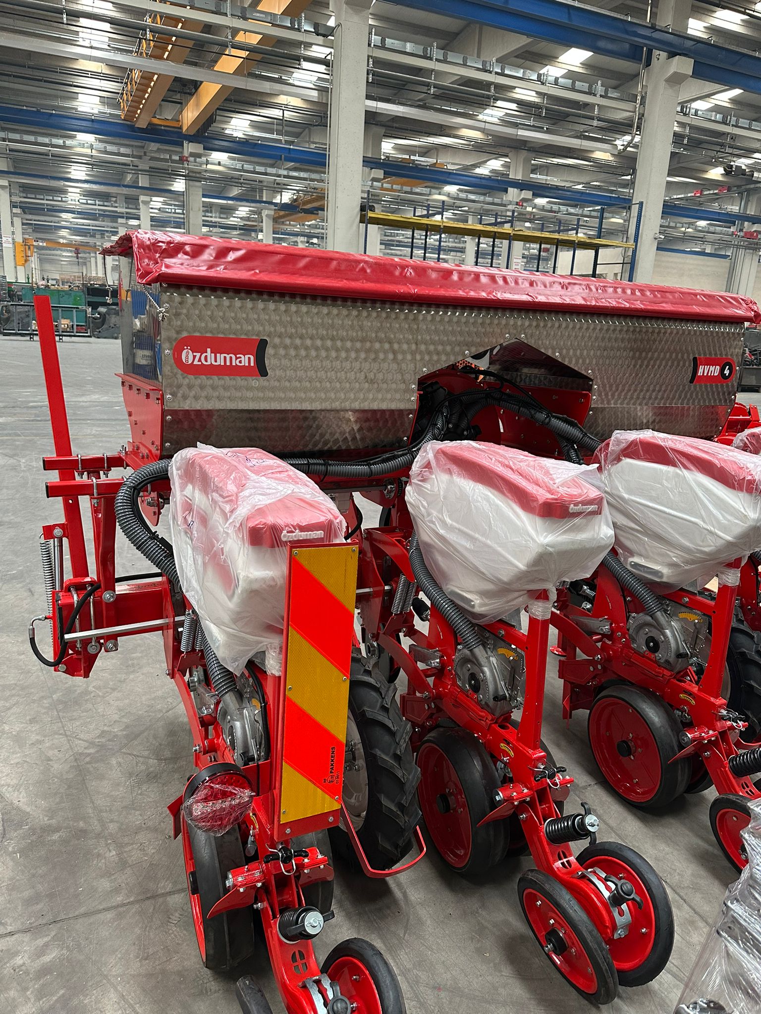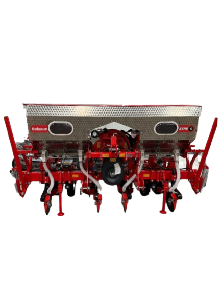 Seria HVMD-T to bardziej zaawansowana linia siewników punktowych, wyposażona w ramę półteleskopową. Jej konstrukcja pozwala na składanie skrajnych sekcji do pozycji transportowej, dzięki czemu szerokość całkowita maszyny wynosi zaledwie 340 cm, co znacznie ułatwia przejazdy drogowe. Siewniki dostępne są w konfiguracjach 6- i 8-rzędowych, co czyni je odpowiednim wyborem dla średnich gospodarstw specjalizujących się w uprawie kukurydzy. Precyzyjne rozmieszczanie nasion w rzędzie zapewnia równomierne wschody i prawidłowy rozwój roślin. Solidna konstrukcja oraz łatwość obsługi sprawiają, że HVMD-T stanowi niezawodne rozwiązanie dla rolników poszukujących wydajnej maszyny do sezonowych prac siewnych.