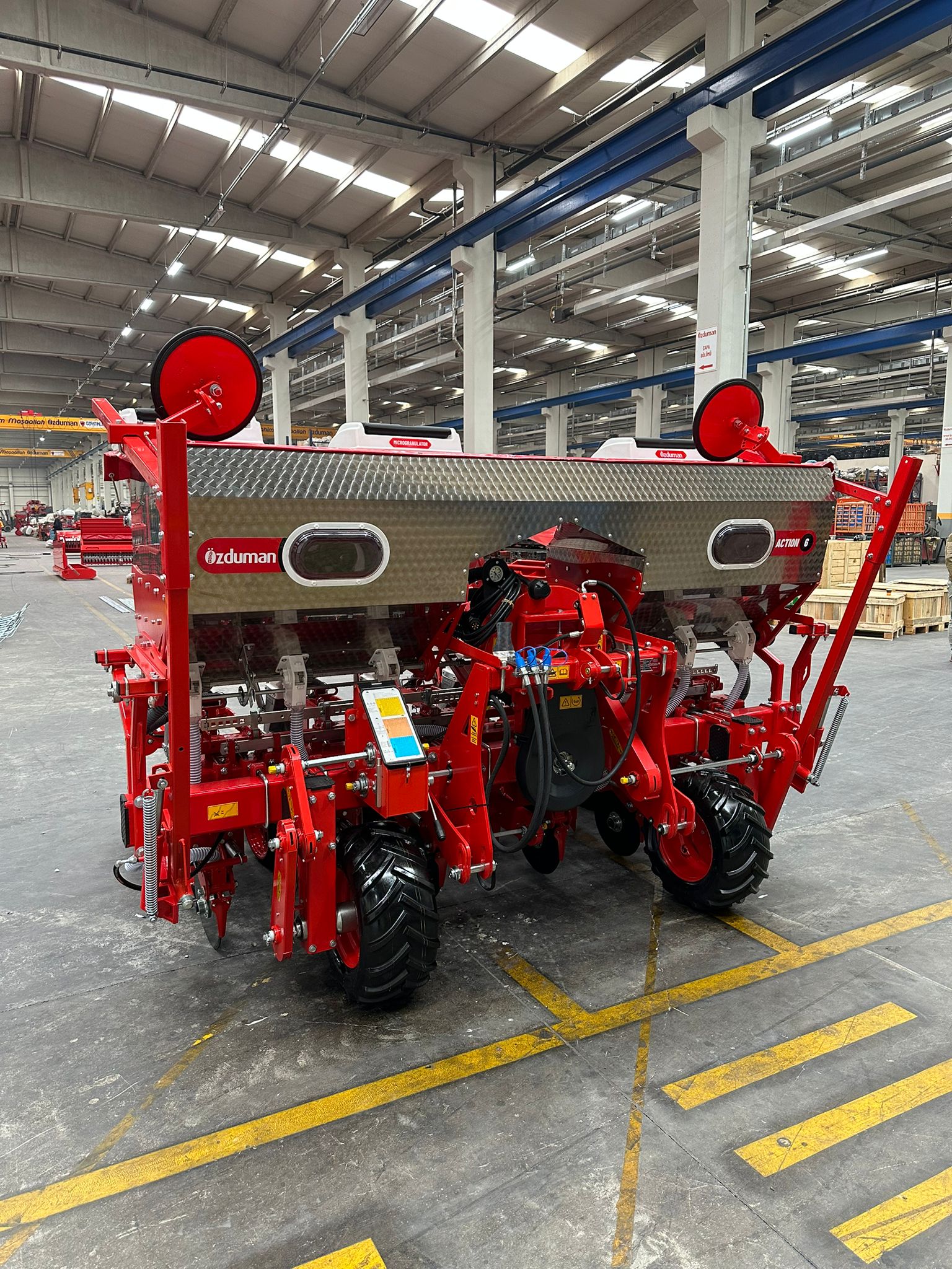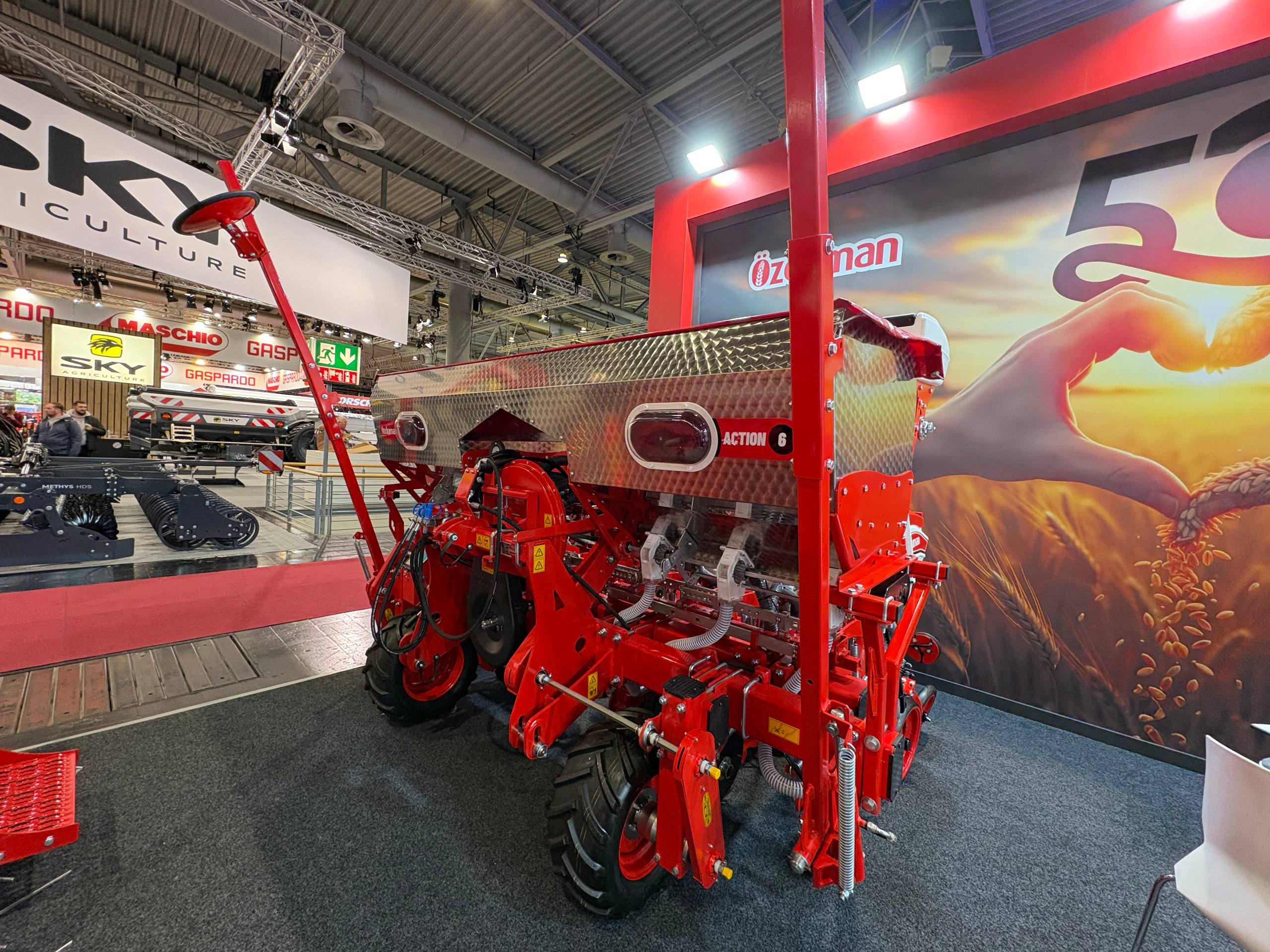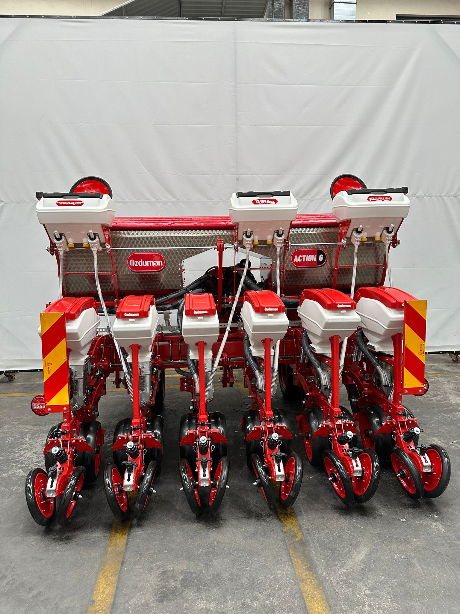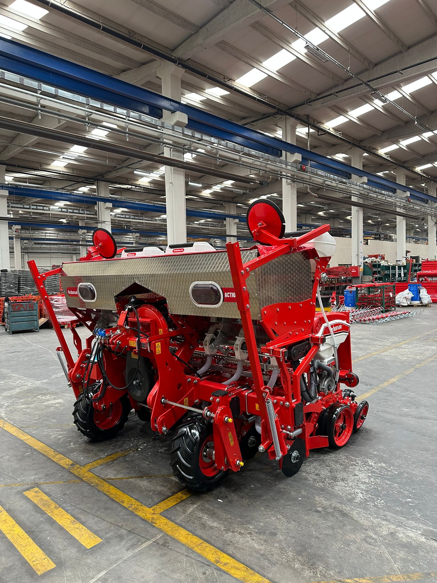 Model Action to zaawansowany siewnik punktowy wyposażony w ramę teleskopową, łączący wszechstronność z wysoką precyzją siewu. Dostępny jest w wersjach 6- i 8-sekcyjnych, a rozstaw między sekcjami można zmieniać w zakresie 45–75 cm co 5 cm, co pozwala idealnie dopasować maszynę do różnych upraw i warunków polowych. Siewnik Action sprawdza się w średnich i dużych gospodarstwach, umożliwiając sianie kukurydzy, buraków, rzepaku czy dyni. Prosta obsługa i solidna konstrukcja zapewniają efektywne wykorzystanie pola oraz równomierne rozmieszczenie nasion w rzędzie. To rozwiązanie dedykowane rolnikom, którzy potrzebują wszechstronnego i niezawodnego sprzętu do sezonowych prac siewnych.